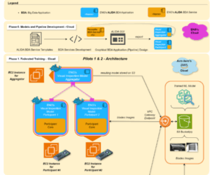 The deployment architecture for Pilots 1, 2, and 3 was successfully defined within Avio Aero’s AWS Virtual Private Cloud (VPC), in accordance with cybersecurity guidelines. Each component was mapped to the appropriate AWS services, with logical connections established to represent different Avio Aero plants. Data from machines is collected and stored in AWS S3, organized by plant for efficient access and processing.